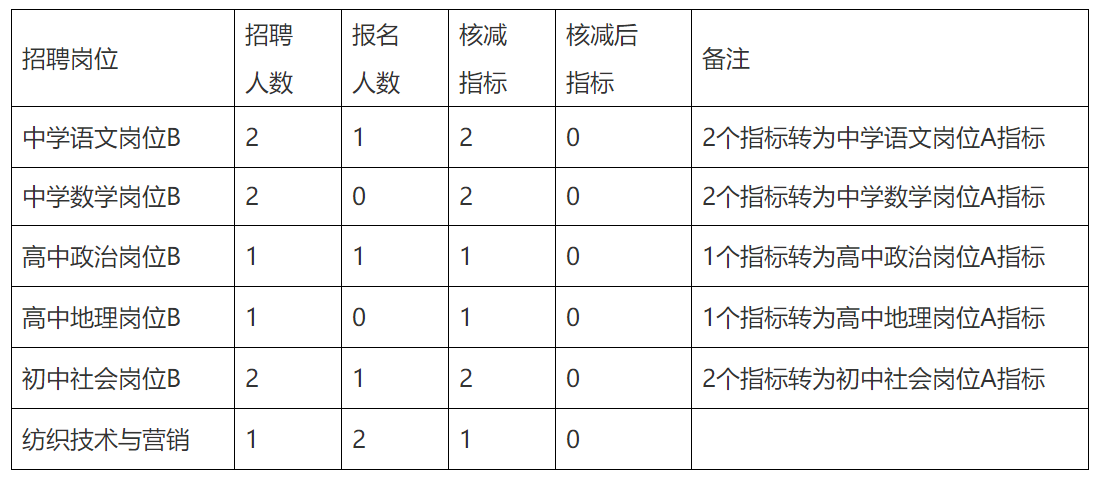 經(jīng)研究,決定對以下錄用崗位指標(biāo)進行核減(調(diào)整)。